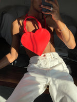A favorite. A statement. Wear your heart on your sleeve, quite literally. Our red Heart Bag steals a scene. Wear the heart shaped bag in hand or crossbody, it comes with a detachable strap. Shop more heart bags!