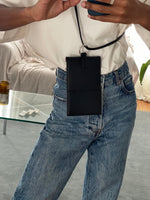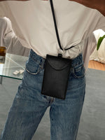 Are you the ultimate minimalist? The type to keep your cards in your phone case in lieu of a bag? Then our ultra-sleek vegan leather phone sling in black is all you need.
