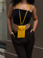Are you the ultimate minimalist? The type to keep your cards in your phone case in lieu of a bag? Then our ultra-sleek vegan leather cell phone bag in yellow is all you need. Keep it secure with our phone sling!