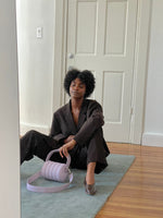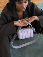 A quilted mini lilac handbag that is as soft as a marshmallow and big enough to hold your basics. Our Quilted Mini Purple Duffle Bag comes with two strap options and chunky silver hardware, what could be sweeter?