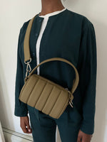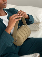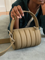 A quilted mini taupe handbag that is as soft as a marshmallow and big enough to hold your basics. Our Quilted Mini Toffee Duffle Bag comes with two strap options and chunky silver hardware, what could be sweeter?