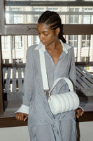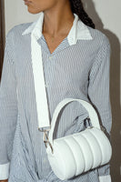 A white duffle bag that is as soft as a marshmallow and big enough to hold your basics. Our Quilted Mini White Cross Body Bag comes with two strap options and chunky silver hardware, what could be sweeter?